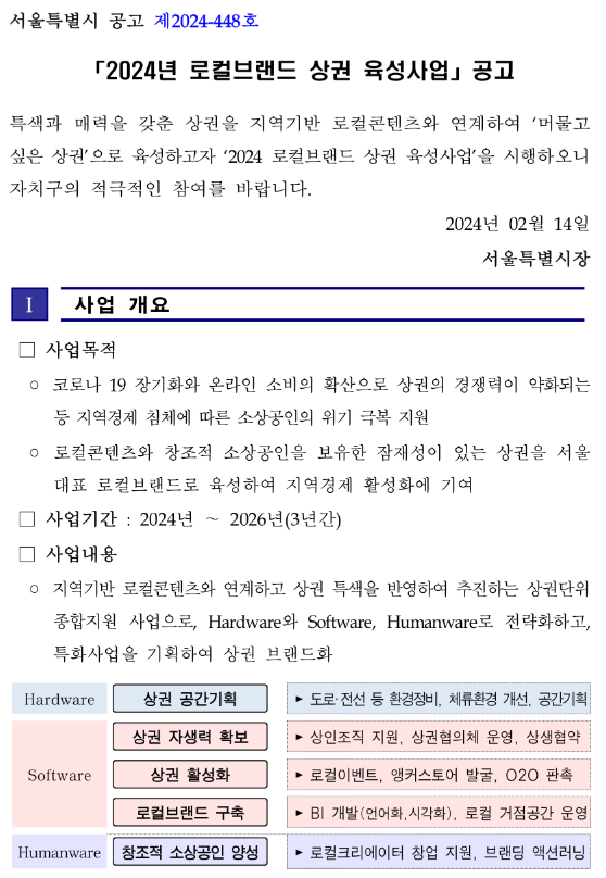 [서울] 2024년 로컬브랜드 상권 육성사업 모집